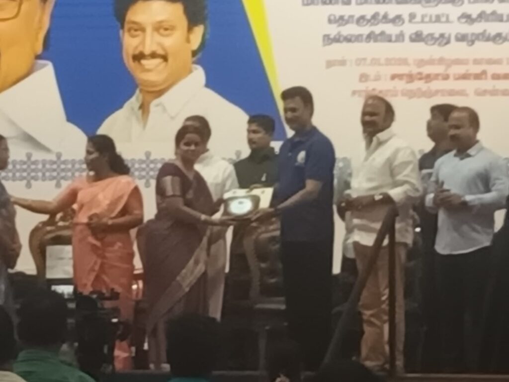 The prestigious award was presented by Mylapore MLA, Sri. Velu, in appreciation of her commitment, passion, and contribution to the field of education.