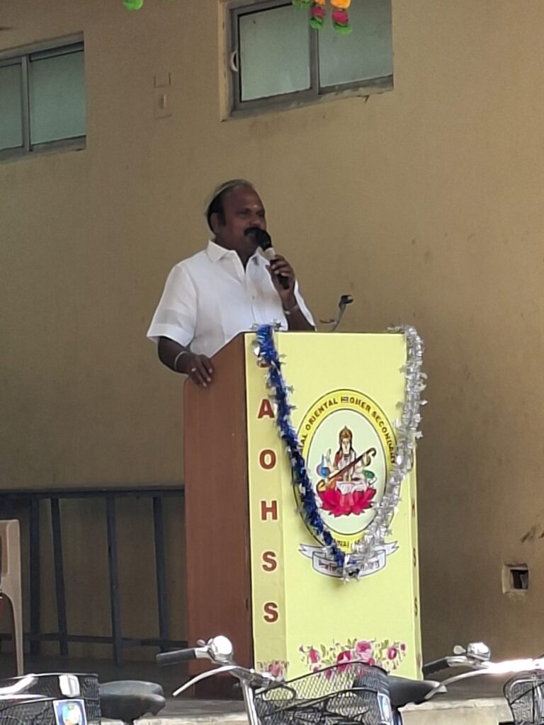 Our respected MLA, Thiru. Velu, addressed the students with an inspiring speech 🗣️ and offered valuable guidance on education and life 🎓🌟. His motivating words encouraged the students to strive for success with dedication and confidence.